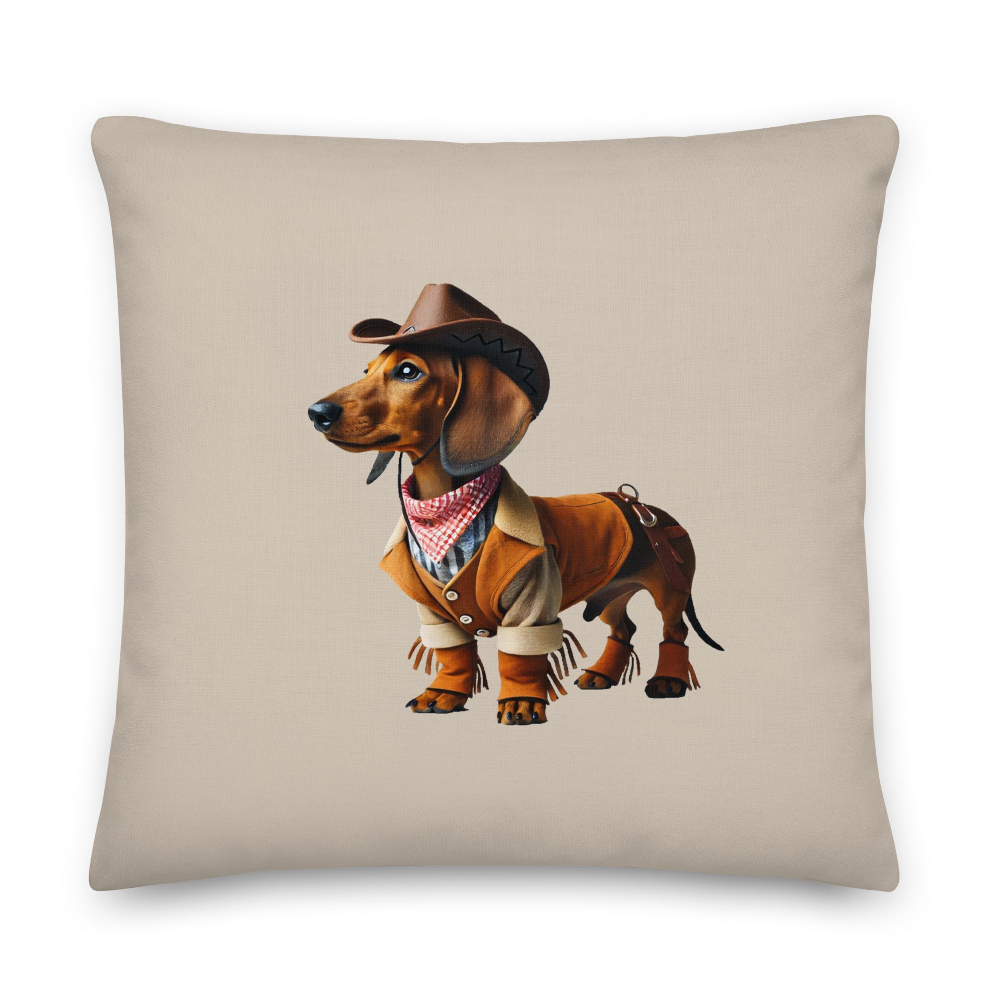 Featuring an adorable dachshund in cowboy gear, this playful and rustic design brings a touch of the wild west to your home.